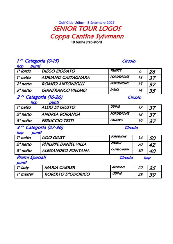 Gara Udine 3 settembre 2025