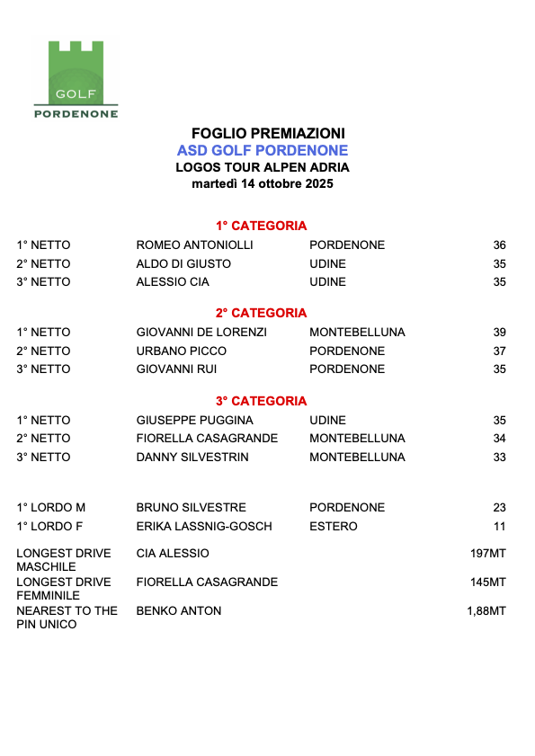 Gara Pordenone 14 ottobre 2025